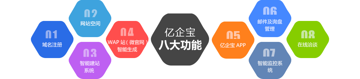 亿企宝是一套为中国中小企业定制的从域名注册、智能云服务器、智能建站系统、免费建站系统、WAP网站(微官网)智能生成、效果智能监控等一站式解决方案!让企业在国内主流平台获得更多展示机会,从而实现更多询盘机会。