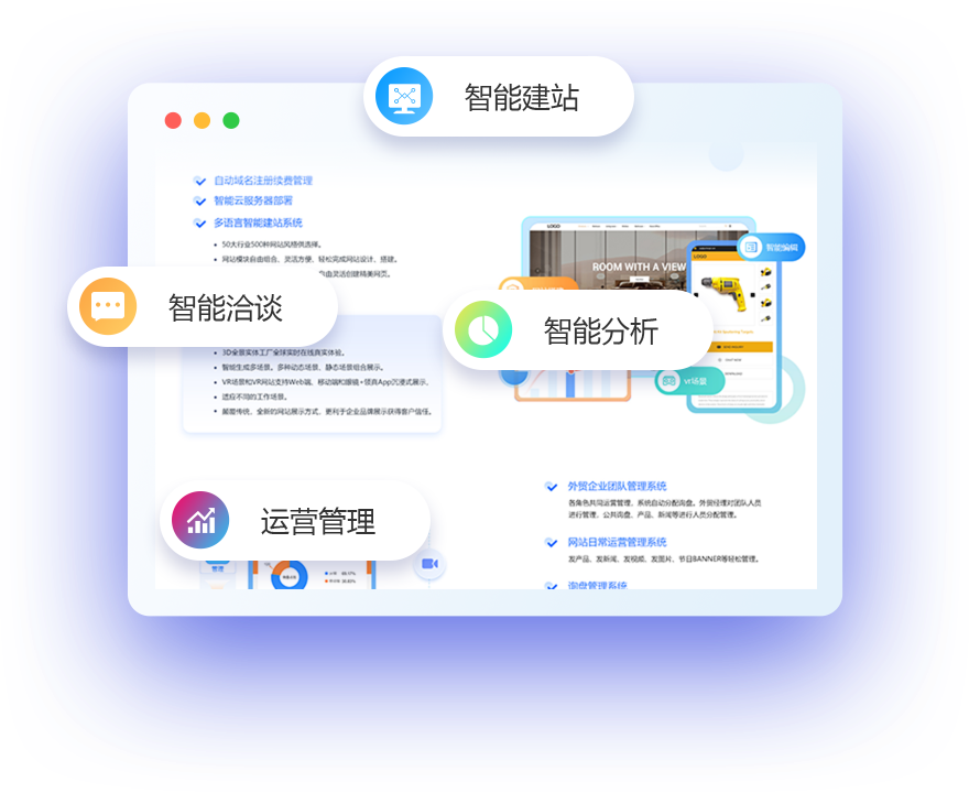 为中国外贸企业提供独立站的建站、管理、洽谈、分析环节的一站式解决方案,帮助中国外贸企业通过独立站获得全球采购商增加出口,帮助中国外贸企业通过独立站品牌出海、数字化转型拓展全球新兴市场。